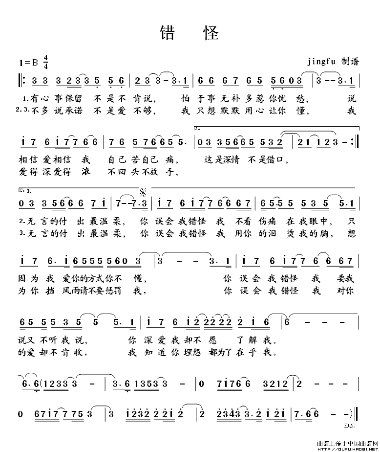 关于《错怪》曲谱的评论