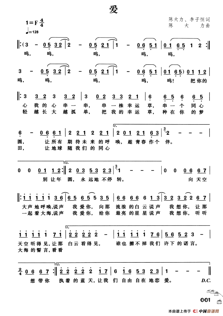 提示:在曲谱图片上单击右键,选择“图片另存为...”即可将曲谱保存到您的电脑中,打印时候可将图片插入到WORD中,调整合适大小打印即可。
