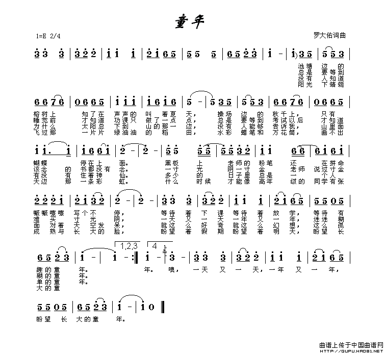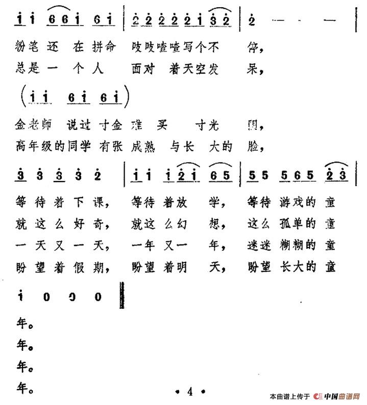 关于《童年》曲谱的评论