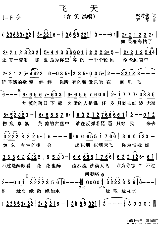 当前位置: 首页 通俗曲谱 二字以下 飞天(席时俊词 万军曲)