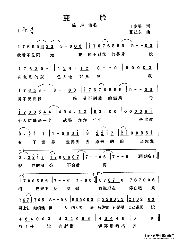 关于《变脸》曲谱的评论