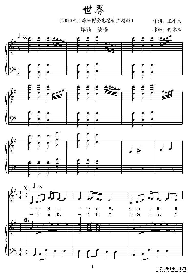 谭晶:世界(歌曲) http://fc.5sing.com/4566645.html