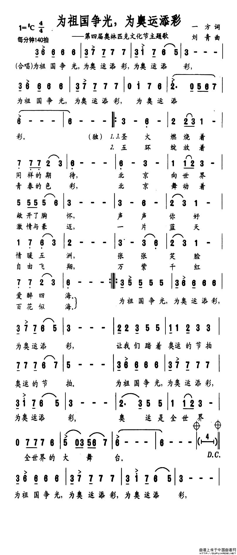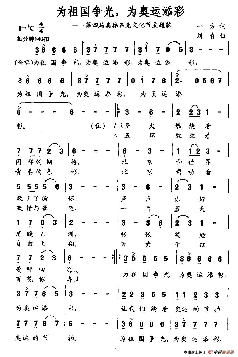 关于《为祖国争光,为奥运添彩》曲谱的评论