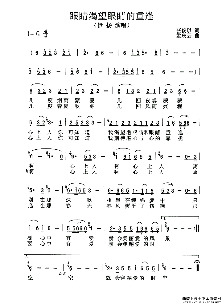 关于《眼睛渴望眼睛的重逢》曲谱的评论