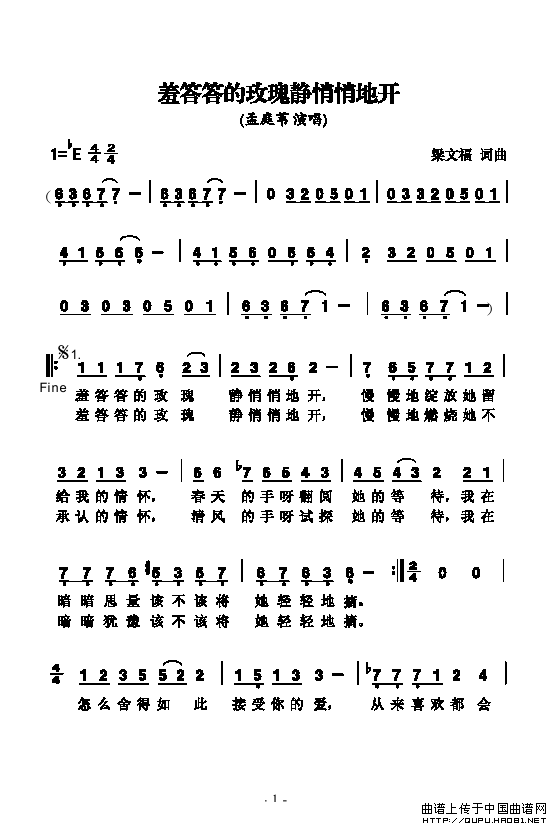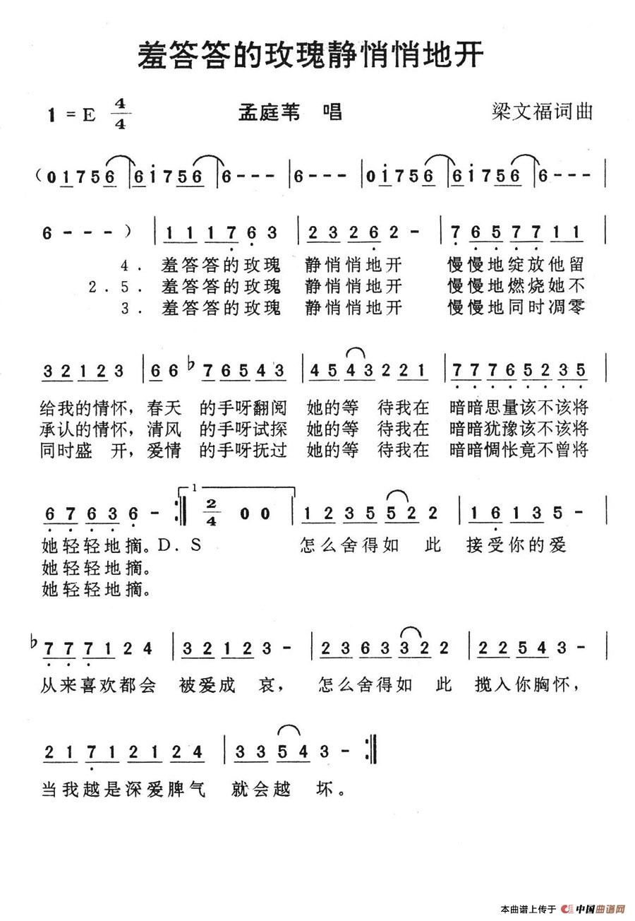 关于《羞答答的玫瑰静悄悄地开》曲谱的评论