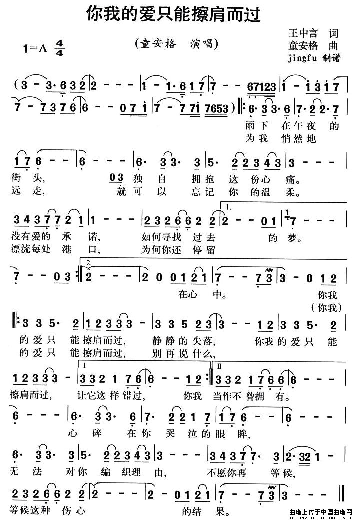 关于《你我的爱只能擦肩而过》曲谱的评论