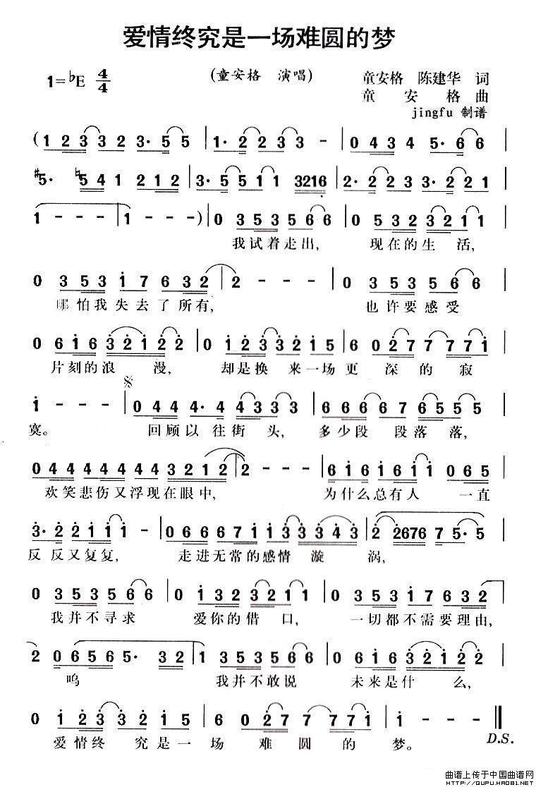 关于《爱情终究是一场难圆的梦》曲谱的评论