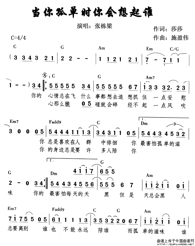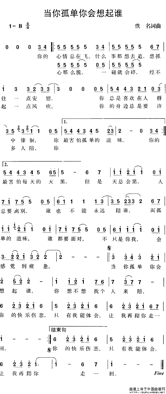 关于《当你孤单时你会想起谁》曲谱的评论
