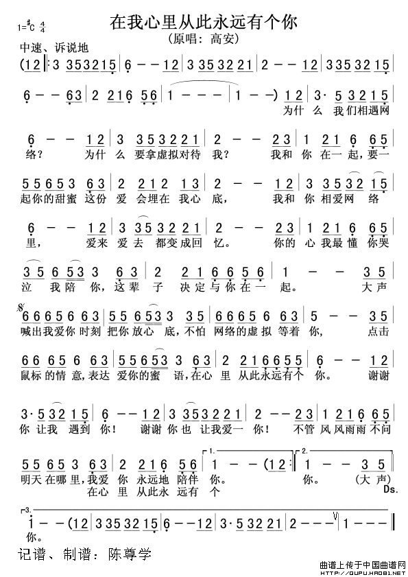 格式:简谱 来源:谱友陈尊学 记谱制谱上传 上传:陈尊学