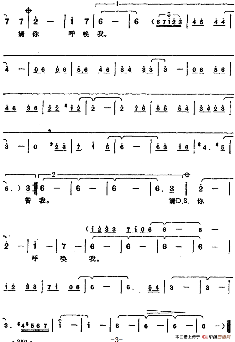 提示:在曲谱图片上单击右键,选择“图片另存为...”即可将曲谱保存到您的电脑中,打印时候可将图片插入到WORD中,调整合适大小打印即可。