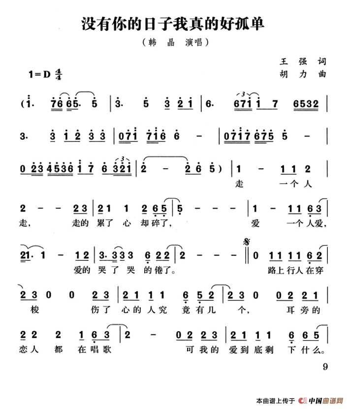 关于《没有你的日子我真的好孤单》曲谱的评论