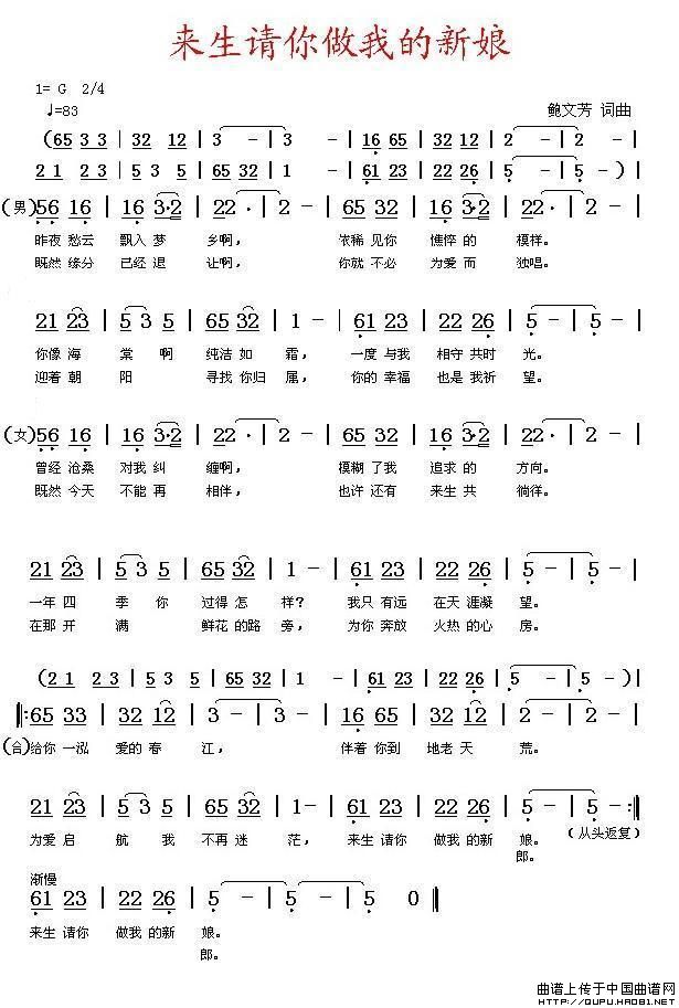 久别重逢的爱情诉说。。。歌曲《来生请你做我的新娘》试听见草亘音乐http://7023380.5sing.com/