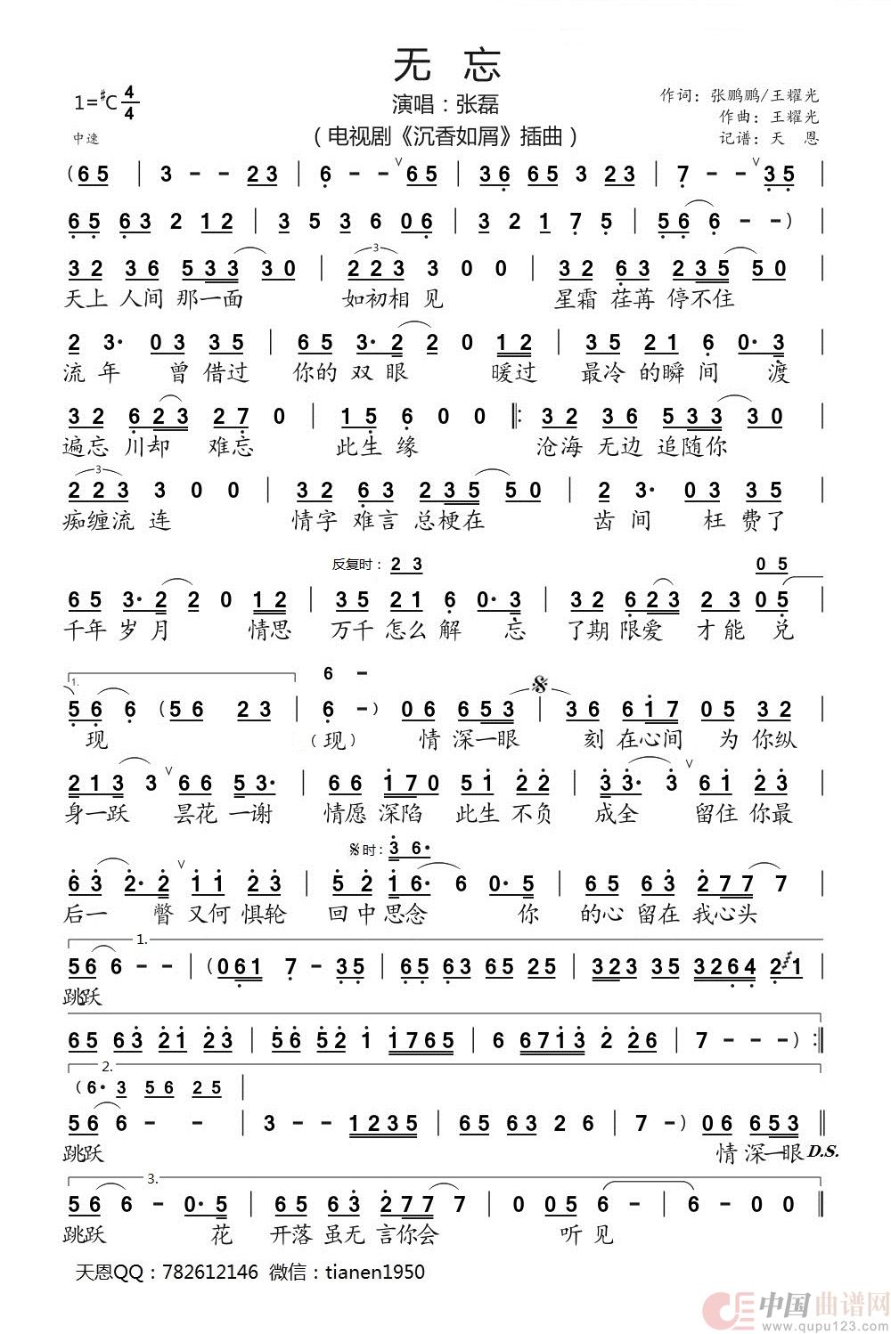 关于《无忘 (《沉香如屑》电视剧插曲- 》曲谱的评论