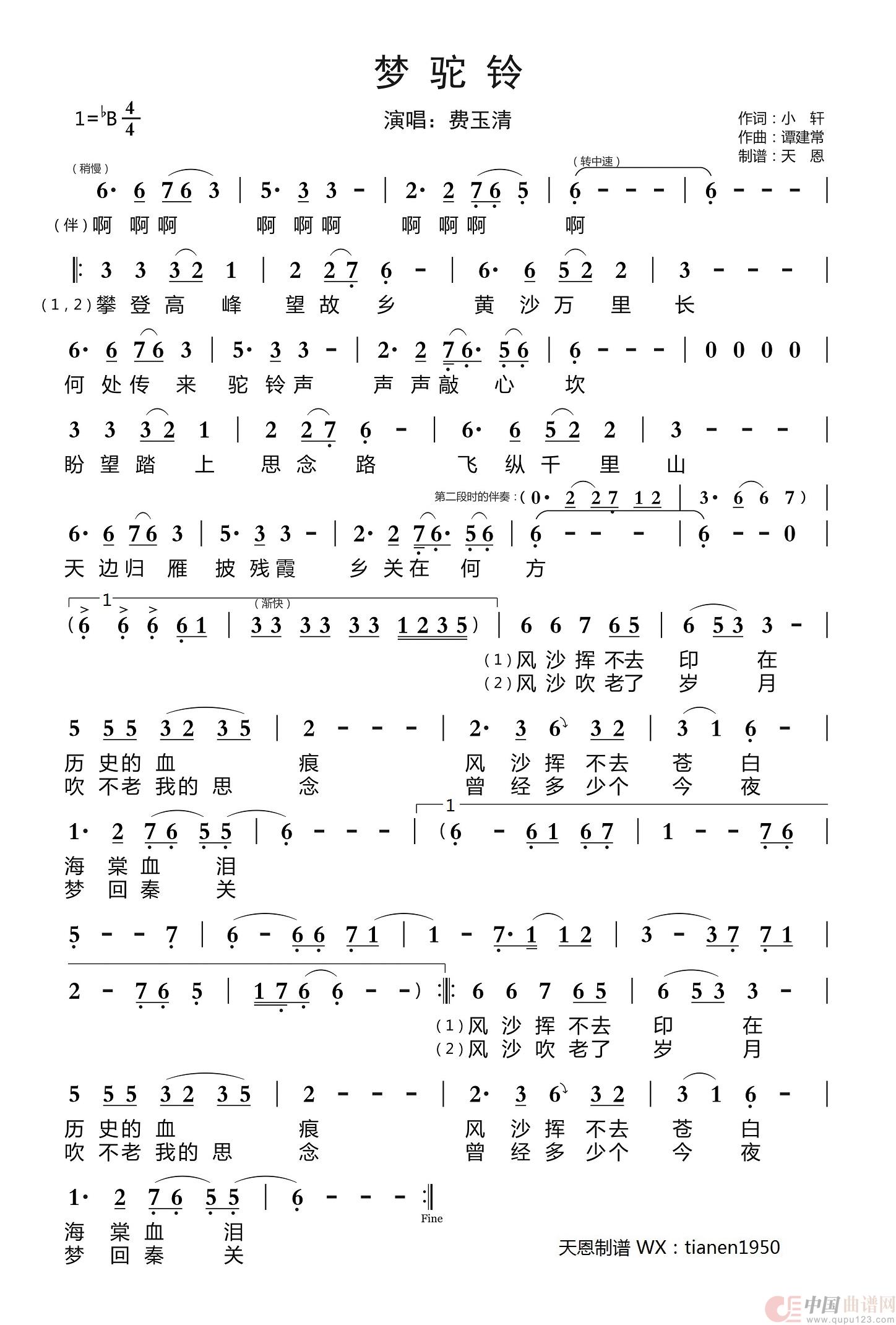 关于《梦驼铃(费玉清版)》曲谱的评论
