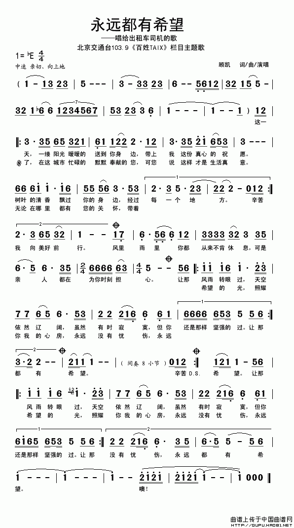 衷心感谢词曲作者顾凯老师馈赠原谱!