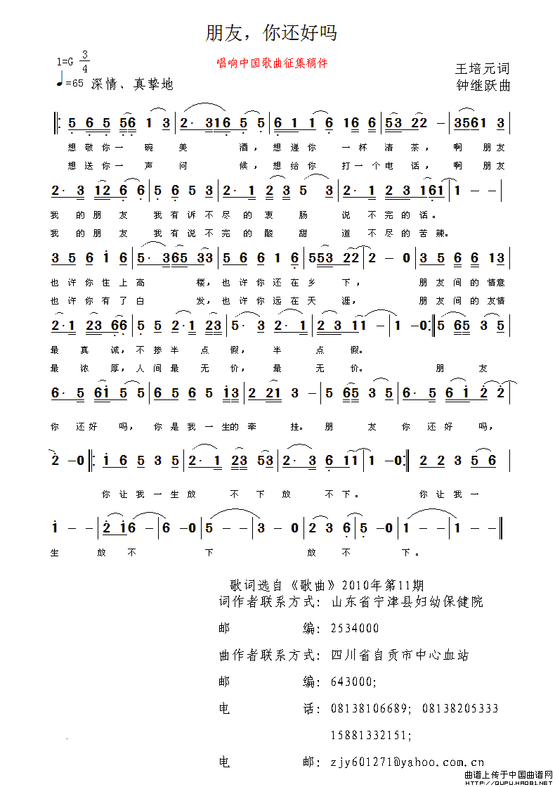 衷心感谢词曲作者老师馈赠曲谱! [回复]