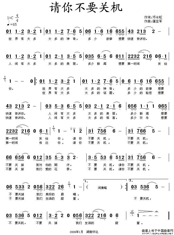 关于《请你不要关机》曲谱的评论
