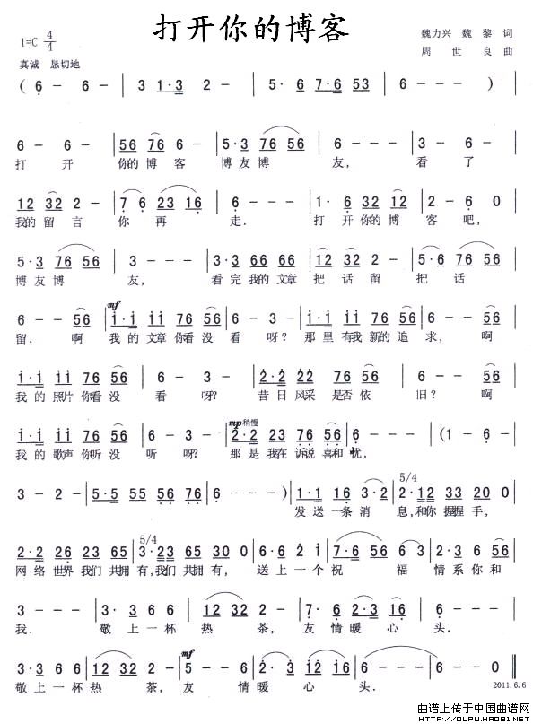 关于《打开你的博客》曲谱的评论