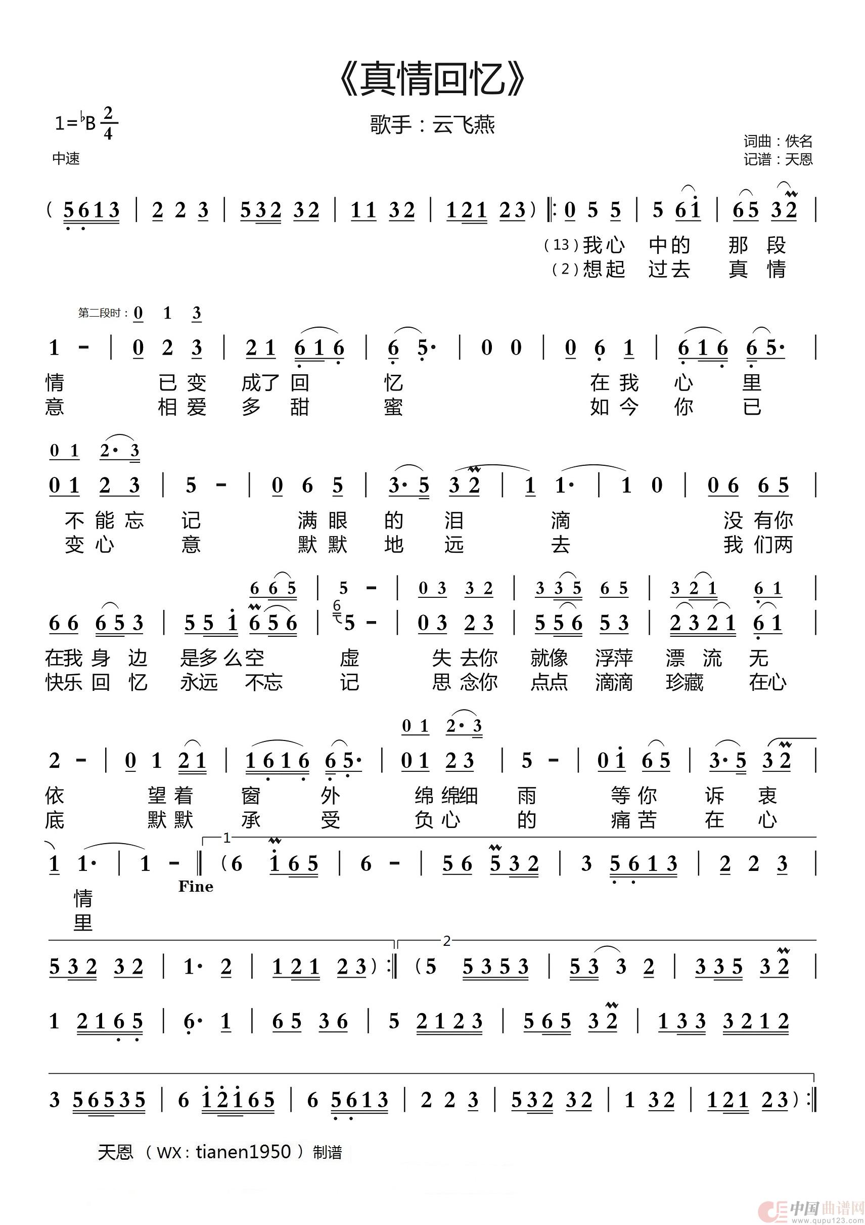 关于《《真情回忆》》曲谱的评论