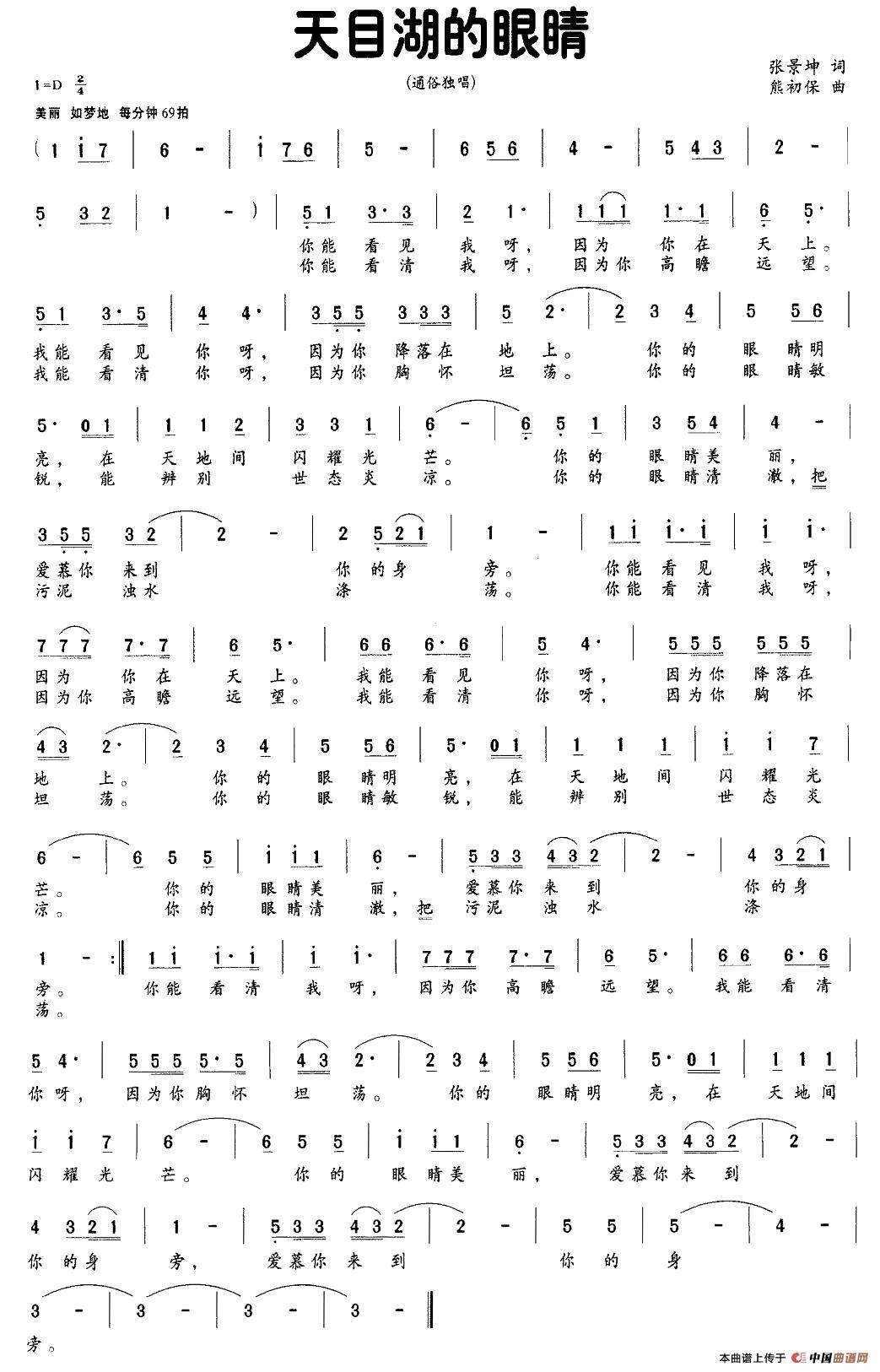 关于《天目湖的眼睛》曲谱的评论