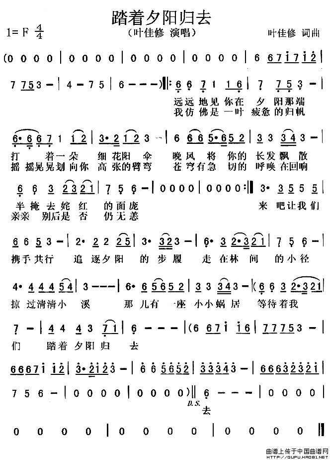 关于《踏着夕阳归去》曲谱的评论