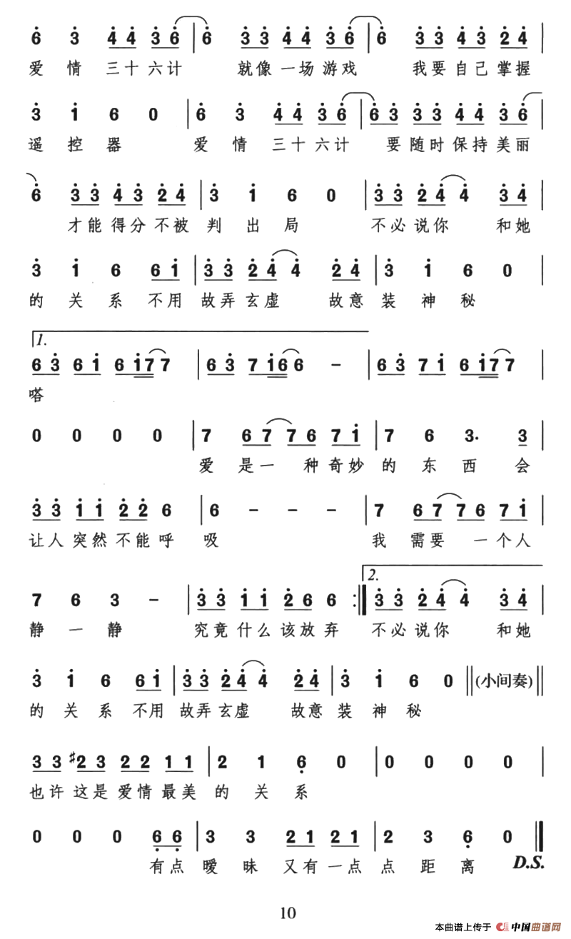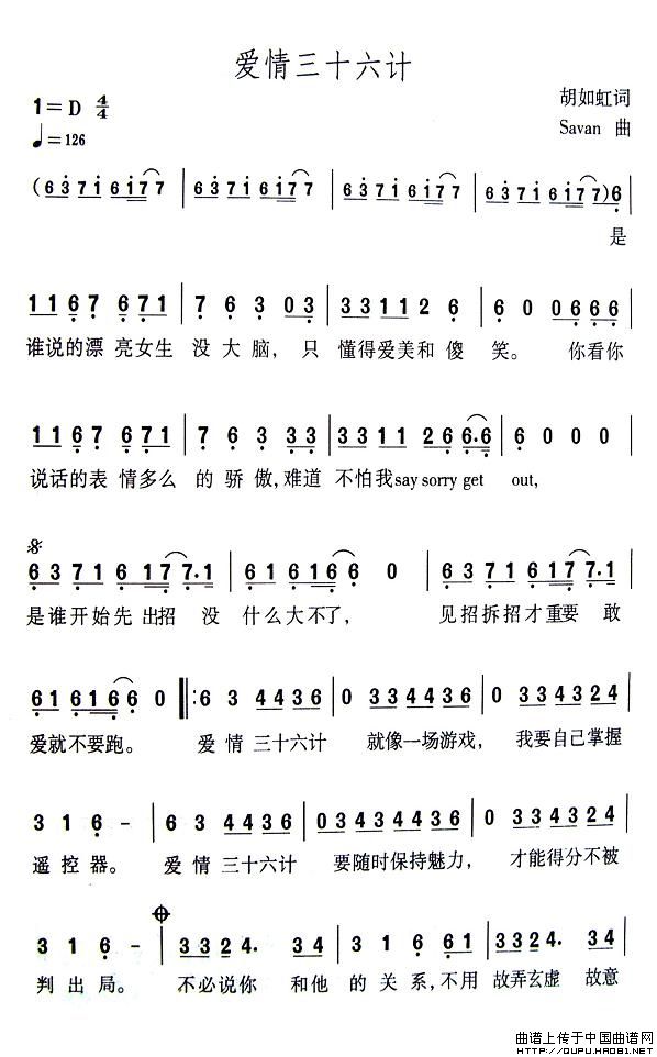 关于《爱情三十六计》曲谱的评论