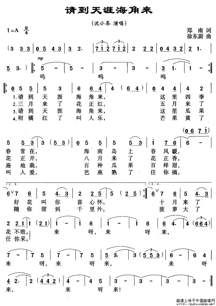 关于《请到天涯海角来》曲谱的评论