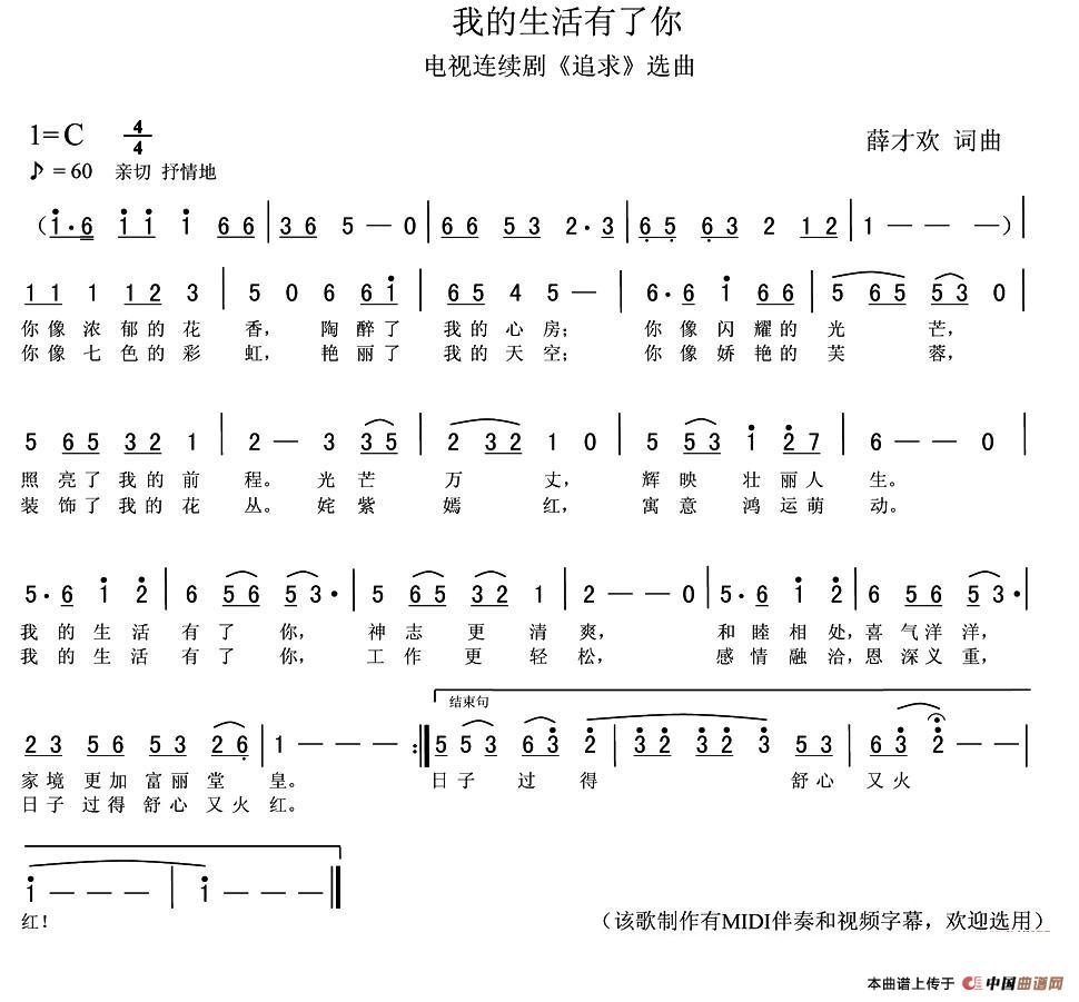关于《我的生活有了你》曲谱的评论