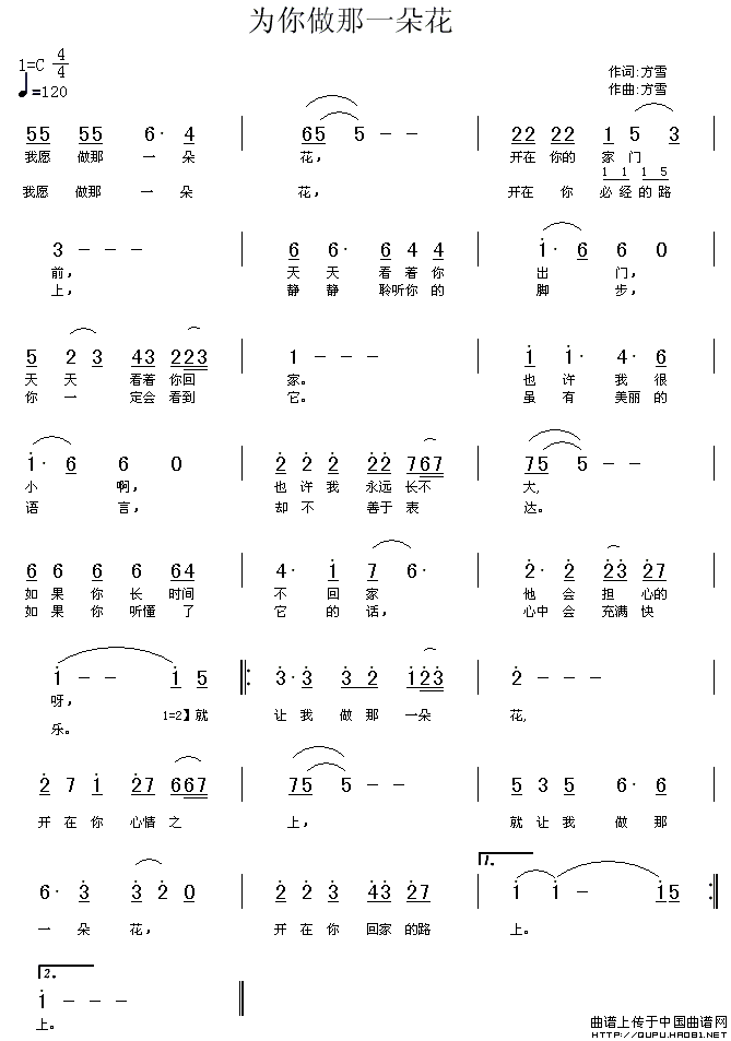 关于《为你做那一朵花》曲谱的评论