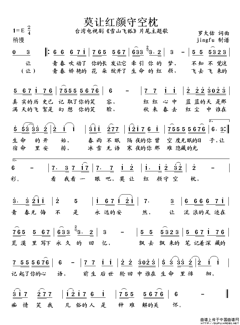 提示:在曲谱图片上单击右键,选择“图片另存为...”即可将曲谱保存到您的电脑中,打印时候可将图片插入到WORD中,调整合适大小打印即可。