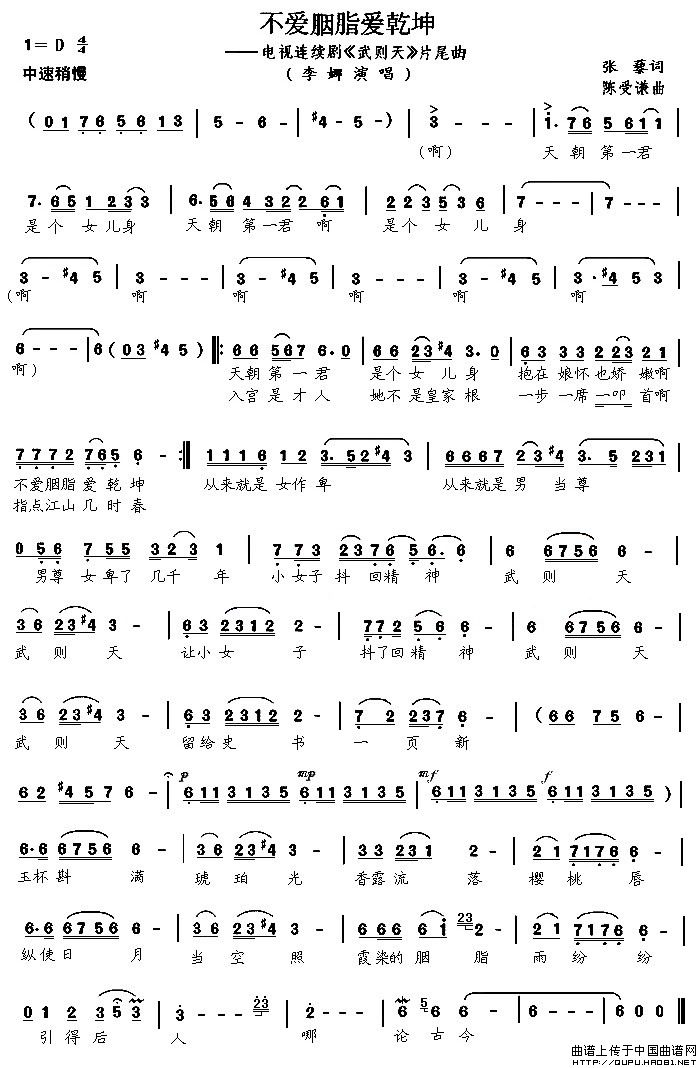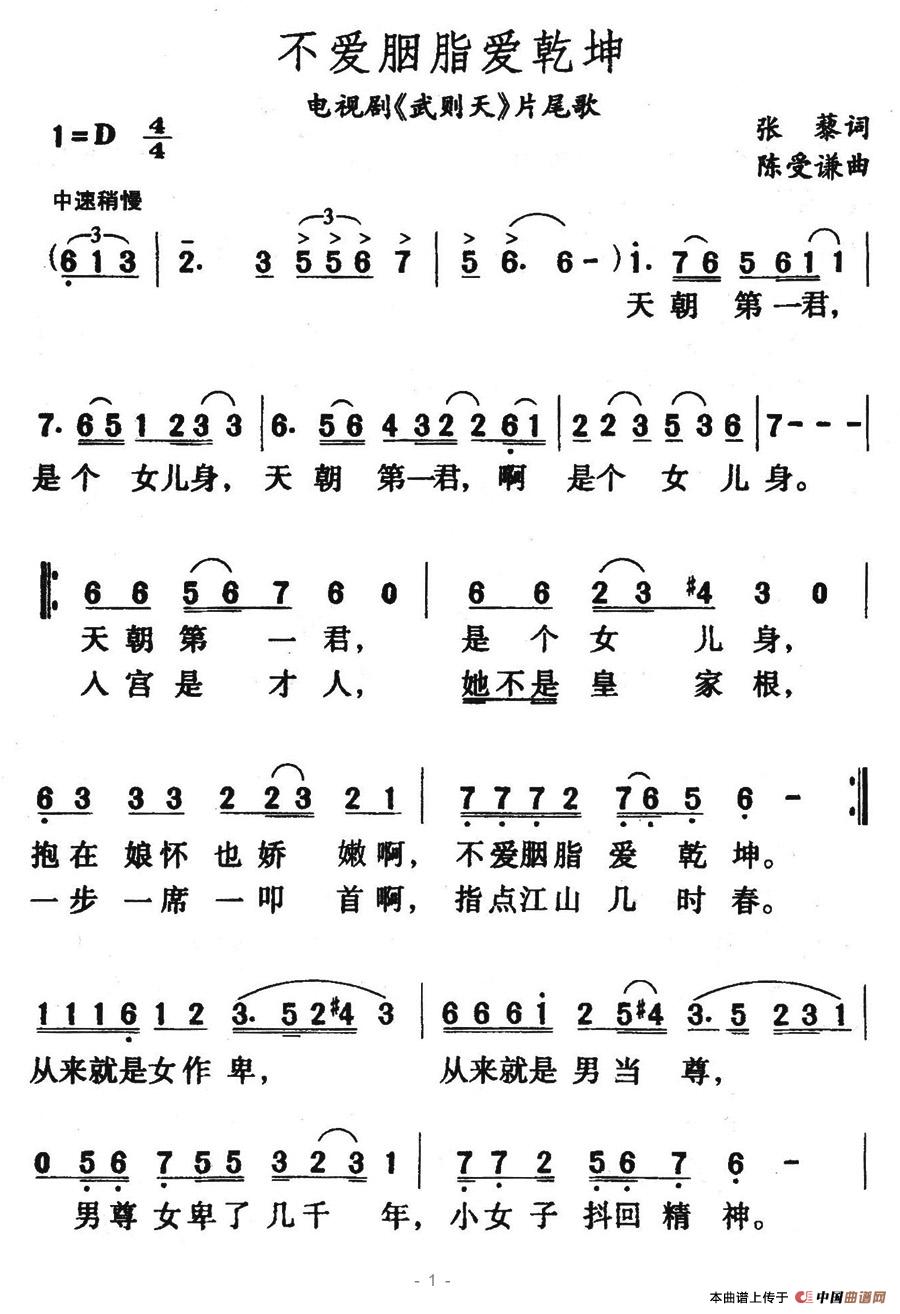 关于《不爱胭脂爱乾坤》曲谱的评论