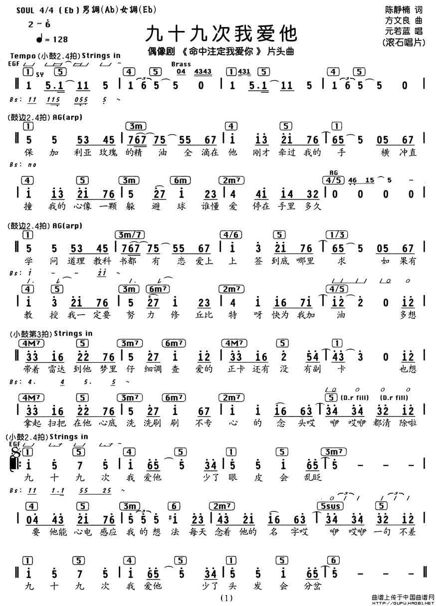九十九次我爱你(电视剧《命中注定我爱你》片头曲、编配乐谱)