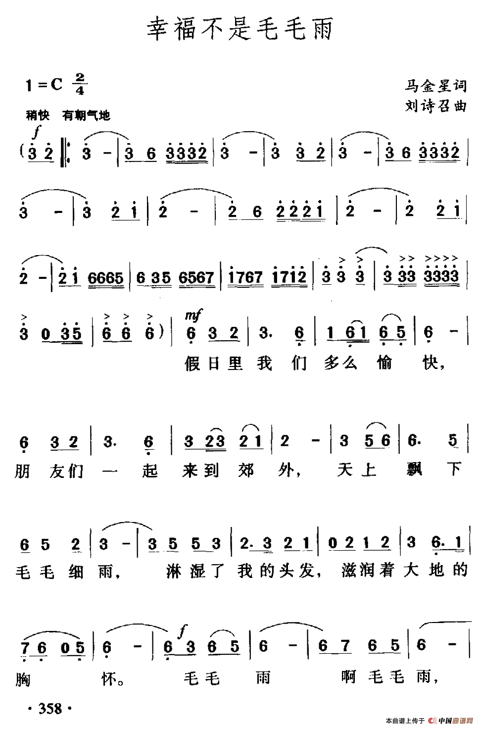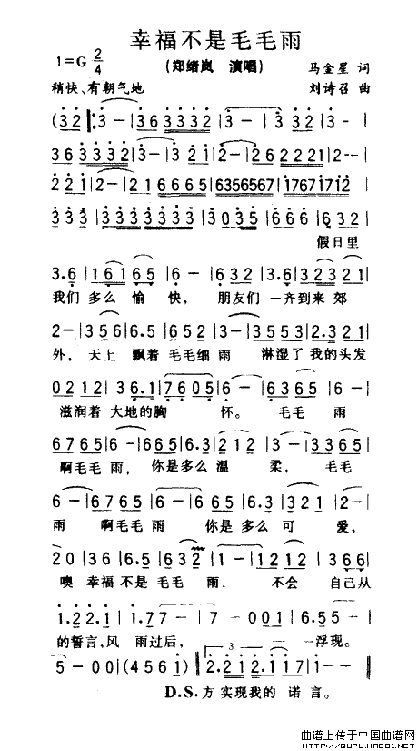 关于《幸福不是毛毛雨》曲谱的评论