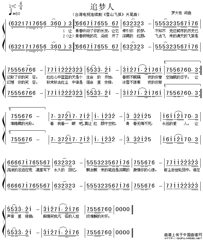 关于《追梦人》曲谱的评论