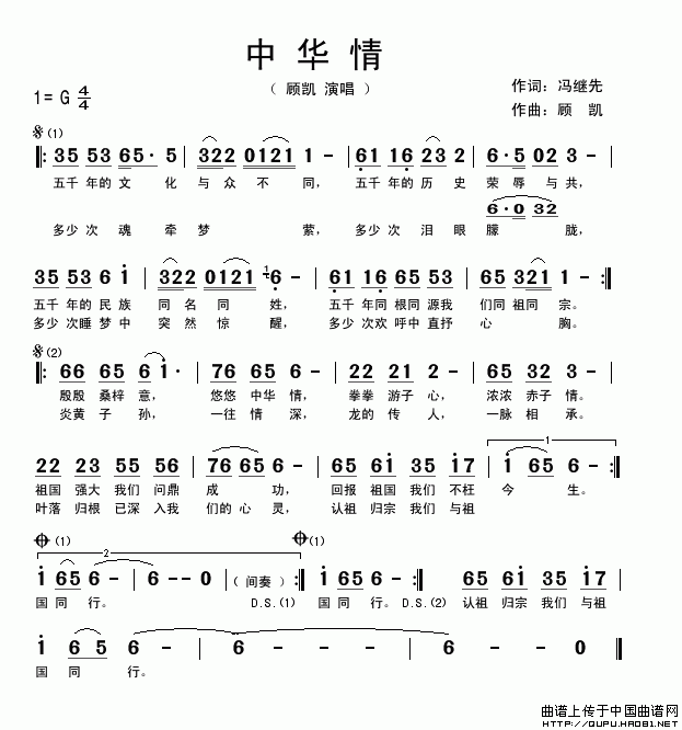 衷心感谢作曲及演唱顾凯老师提供曲谱!