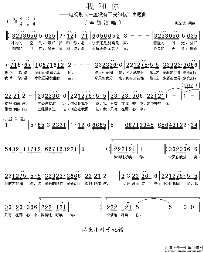 当前位置: 首页 通俗曲谱 三字歌名 我和你(电视剧《一盘没有下完的棋》主题歌)