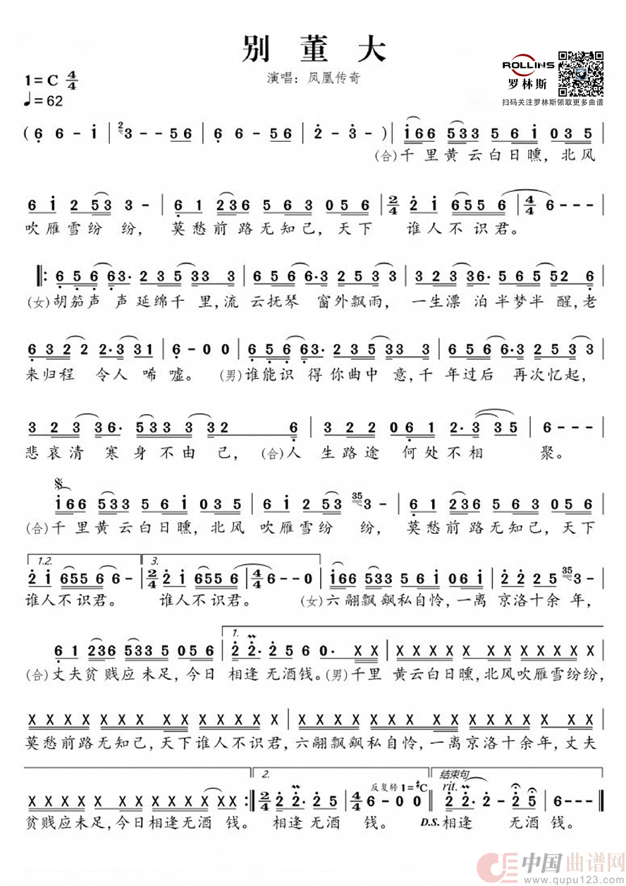 提示:在曲谱图片上单击右键,选择“图片另存为...”即可将曲谱保存到您的电脑中,打印时候可将图片插入到WORD中,调整合适大小打印即可。