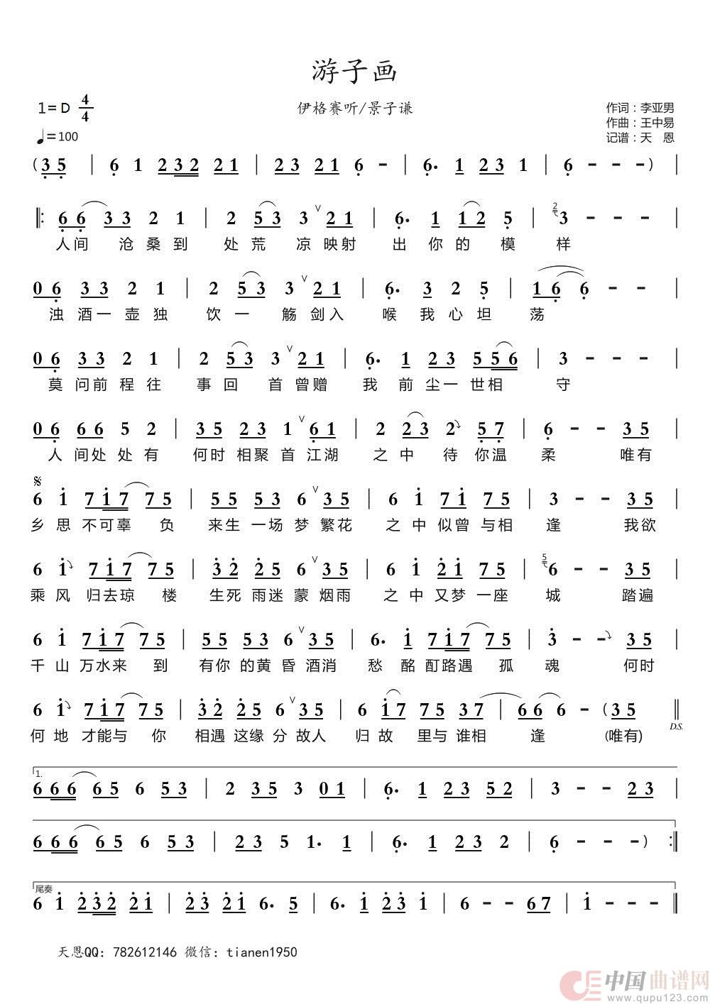 作词:李亚男 作曲:王中易 演唱(奏):伊格赛听/景子谦 来源:谱友天恩上传 上传:天恩