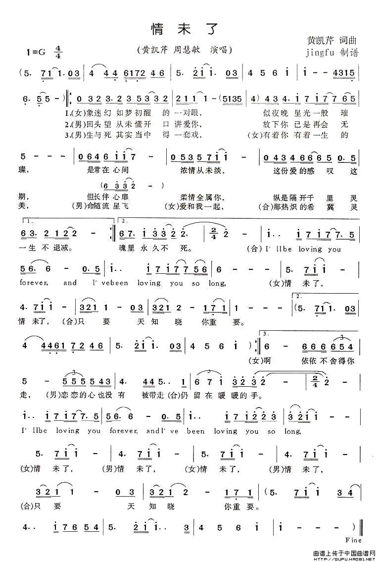 关于《情未了》曲谱的评论