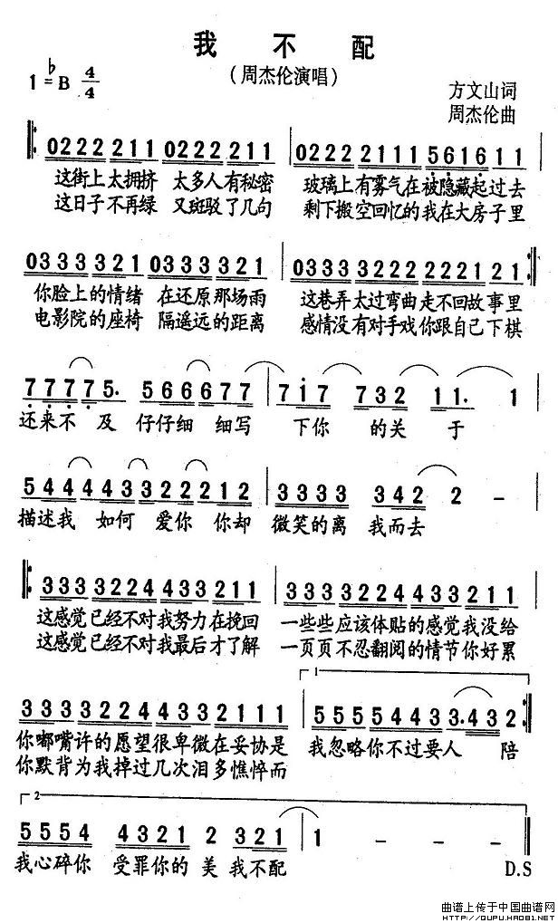 当前位置: 首页 通俗曲谱 三字歌名 我不配