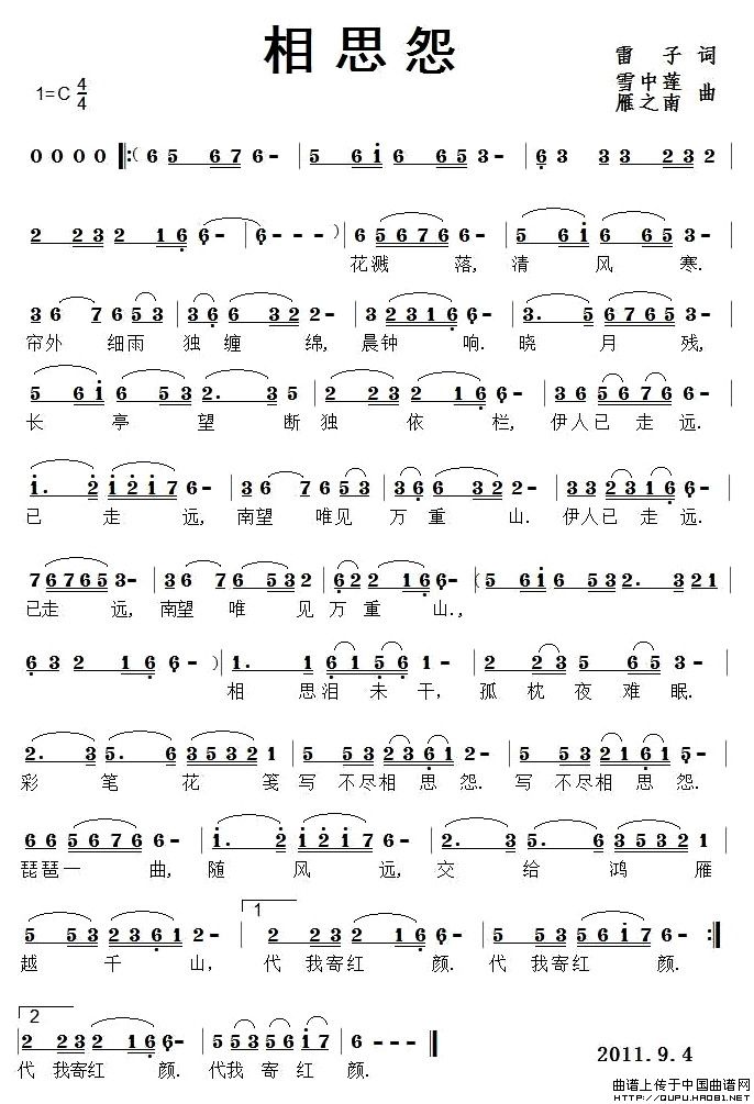 格式:简谱 来源:作者上传《中国原创音乐基地》 上传:秋叶起舞
