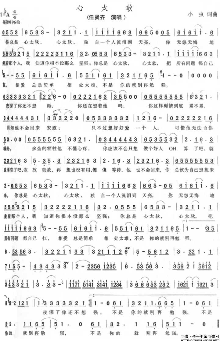 作词:小虫   作曲:小虫   演唱(奏):任贤齐   格式:简谱   来源:转自《哆来咪曲谱网》   上传:秋叶起舞   日期:2010-02-28   浏览次数: