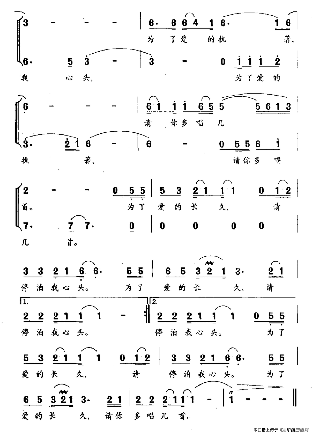 提示:在曲谱图片上单击右键,选择“图片另存为...”即可将曲谱保存到您的电脑中,打印时候可将图片插入到WORD中,调整合适大小打印即可。