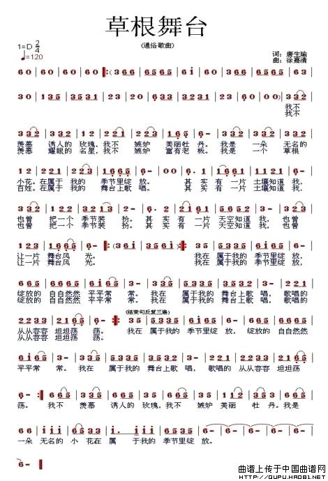 关于《草根舞台》曲谱的评论