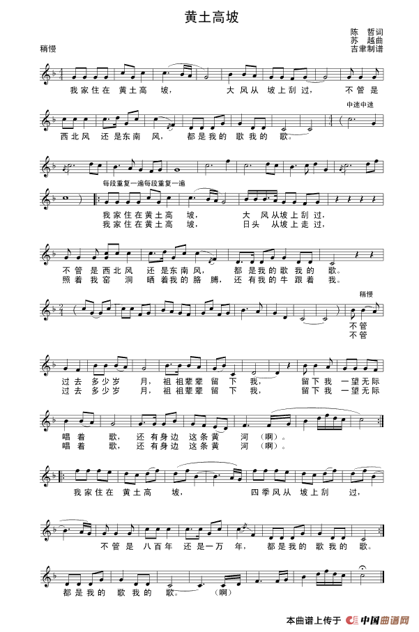 关于《黄土高坡》曲谱的评论