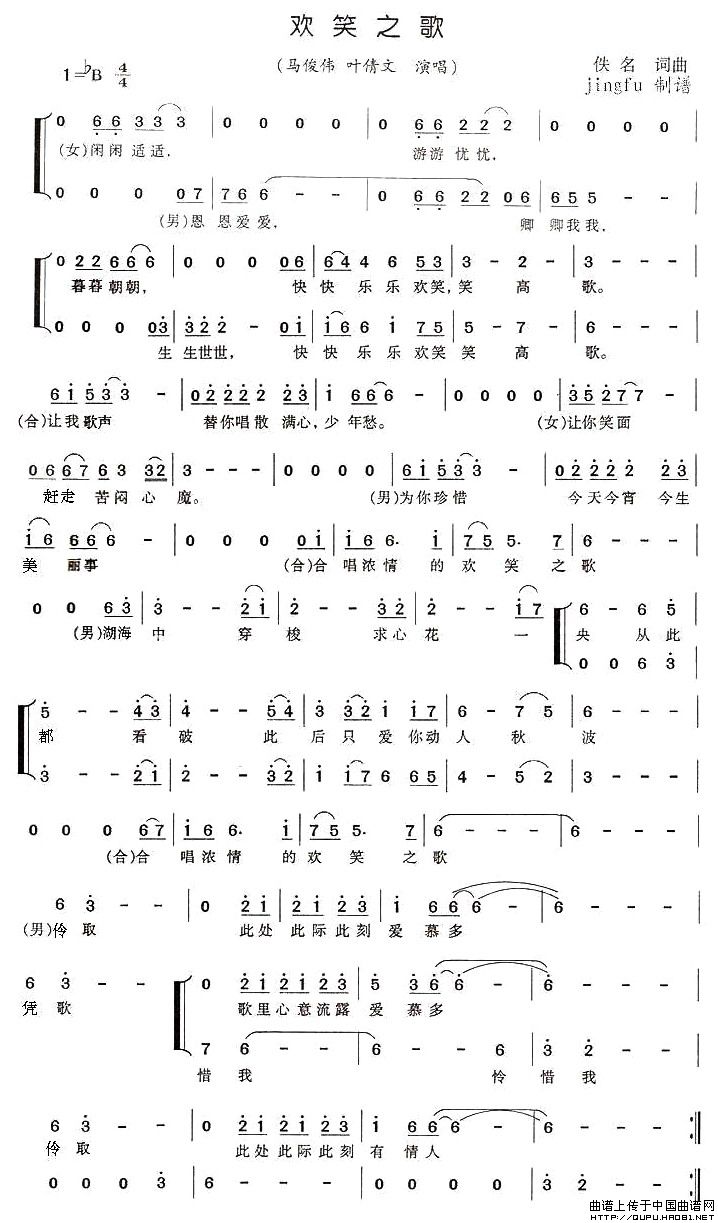 演唱(奏):马俊伟、叶倩文 格式:简谱 来源:谱友jingfu 制谱上传 上传:秋叶起舞