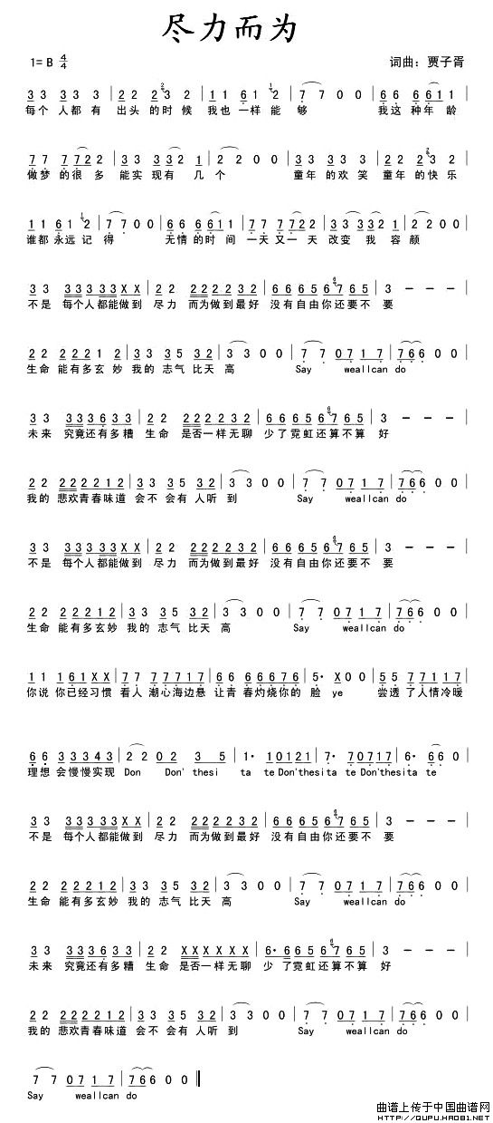 作词:贾子胥 作曲:贾子胥 格式:简谱 来源:转自《中国原创音乐基地》 上传:秋叶起舞