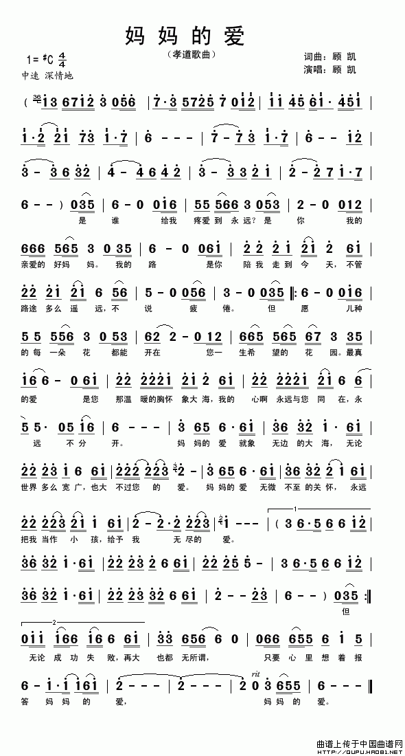 衷心感谢词曲作者顾凯老师馈赠曲谱!