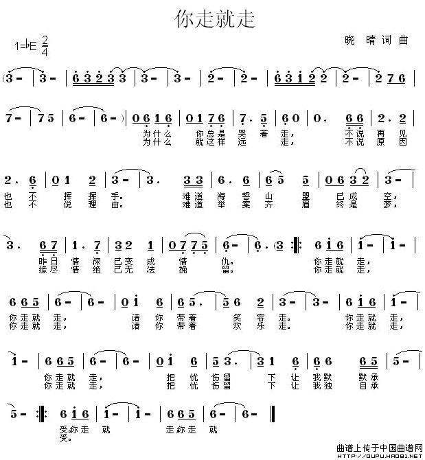 关于《你走就走》曲谱的评论