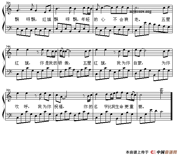 红旗飘飘(乔方词 李杰曲、钢琴弹唱谱)